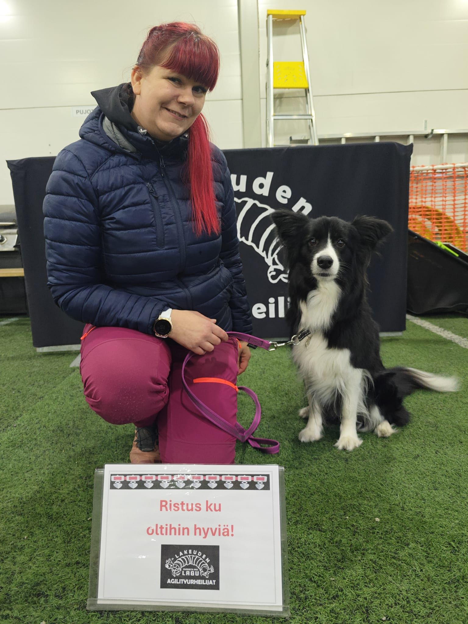 16.3.2025 Uutta vuotta on ehtinyt jo kulua yli 2 kuukautta ja tuloksia on myös tullut varsin mukavasti. Tämän vuoden tuloskimaran aloitti "Taneli" (Amazeme Zappy Iceman) ja Tarja juosten Lahdessa kaksi nollarataa. Taneli ja Tarja juoksivat pari nollaa myös helmikuun kisoissa. Nyt on kyllä kova putki päällä tällä parivaljakolla! Nollia ovat juosseet myös V-pentueen tytöt, "Pilke" (Amazeme Vernal Breeze) ja "Windi" (Amazeme Velvet Diamond). Pilke korkkasi kisauransa helmikuun alussa Seinäjoella tempaisten jo ensimmäisestä kisasta nollan. Pilkeen sisko, Windi, kisasi tätä edeltävänä päivänä Janakkalassa juosten kakkosissa voittonollan! Paljon onnea Tarjalle, Riitalle ja Vilmalle näistä hienoista agilitytuloksista!